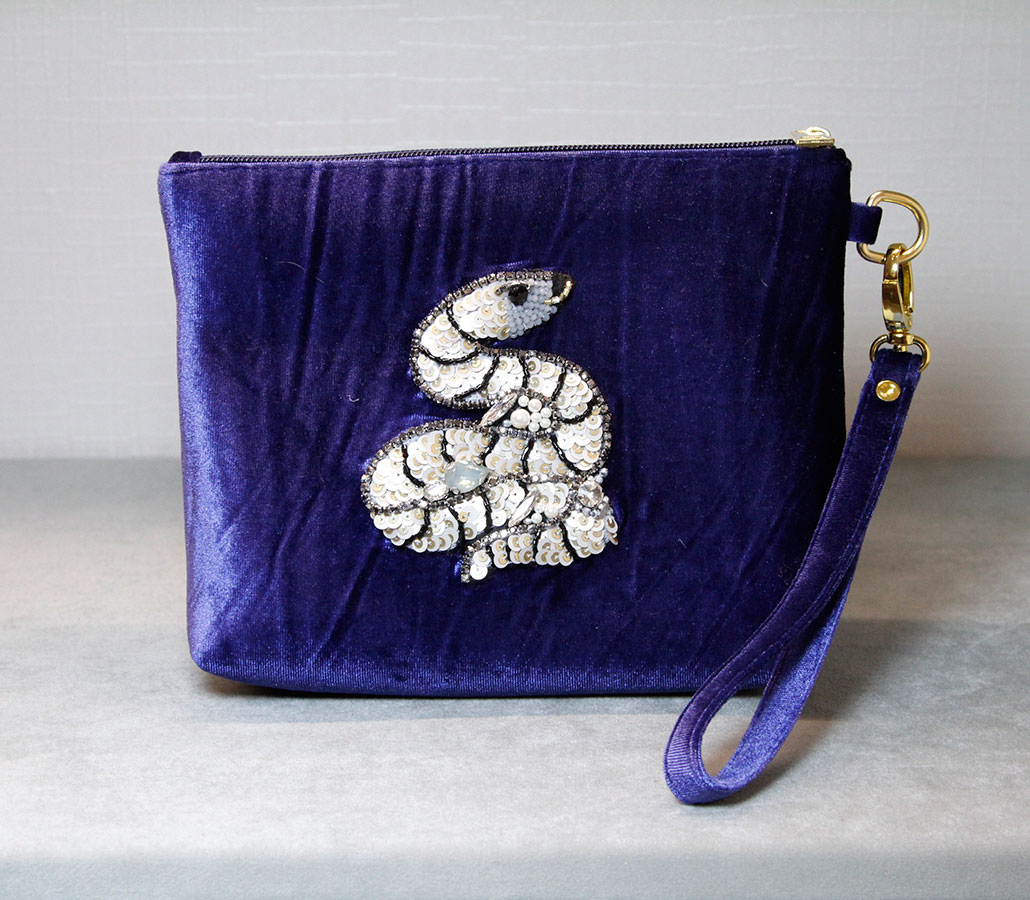 Made with velvet fabric, zirconia, crystals, and beads ornament