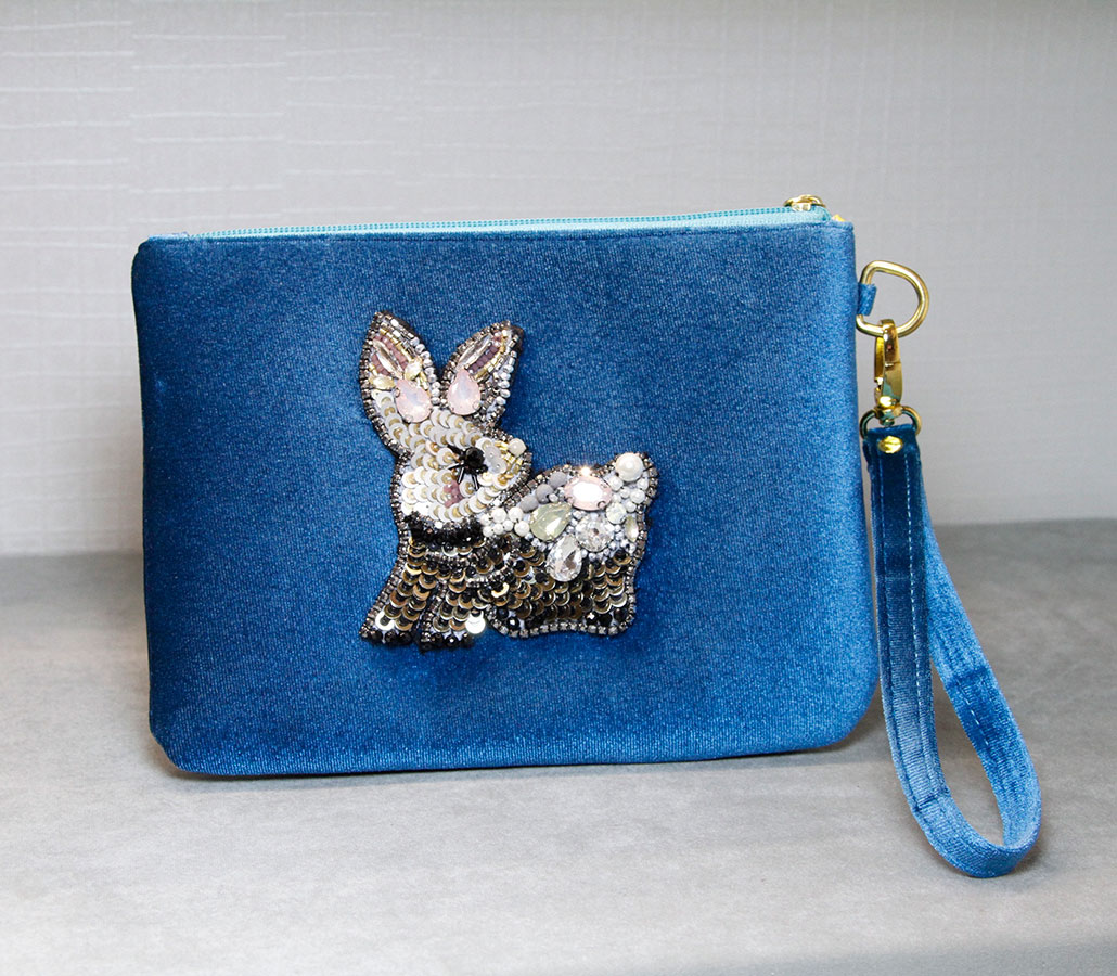 Made with velvet fabric, zirconia, crystals, and beads ornament