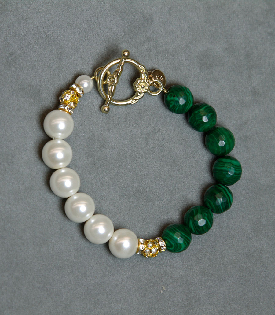 Made with white pearls and natural stones